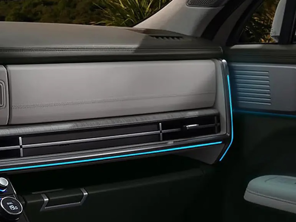 Cambia la iluminación de la cabina según tu estado de ánimo. Las luces de ambiente se extienden desde el panel de instrumentos hasta las puertas traseras y proporcionan una elegante atmósfera en el interior.